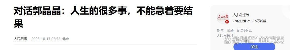 信息来源:人民日报 2025-10-17 对话郭晶晶:人生的很多事,不能急着要结果